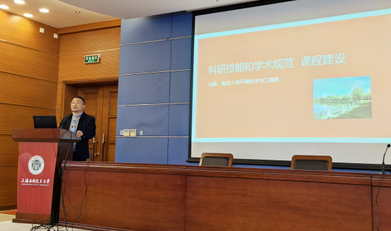 11月17日,由党委教师工作部主办、化工与环境工程学院承办的第74期教师沙龙暨新进教师理工2组校内培训在行政楼117报告厅举办。上海市课程思政教学名师、复旦大学环境科学与工程系副主任马臻教授应邀作专题报告,化工学院党委书记毛东森,党委教师工作部副部长、人事处副处长彭亚萍和培训班50余名新进教师参加沙龙。
